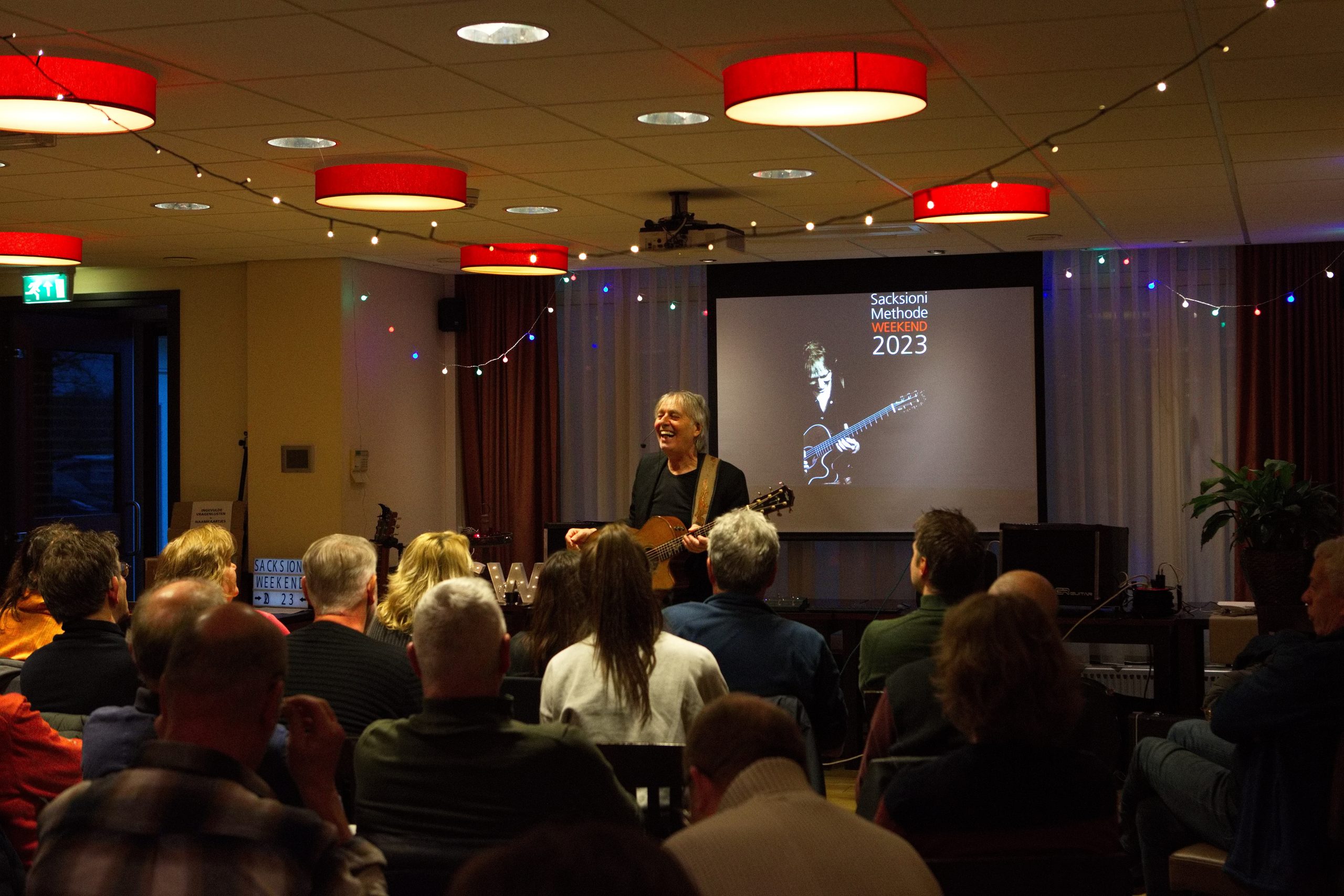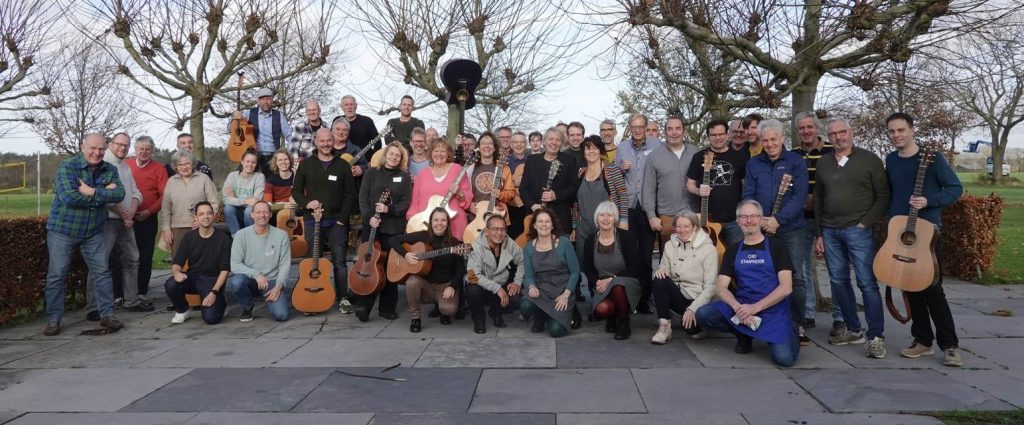Korte impressie van de all-in fingerstyle gitaar clinic die afgelopen weekend plaatsvond in de Buitenhorst in Schaijk. De veertig deelnemers – weer geheel uitverkocht – beoordeelden deze editie met een 9.1!! Ook de keukenploeg, die al het eten en drinken verzorgde, werd rijkelijk beloond met complimenten.